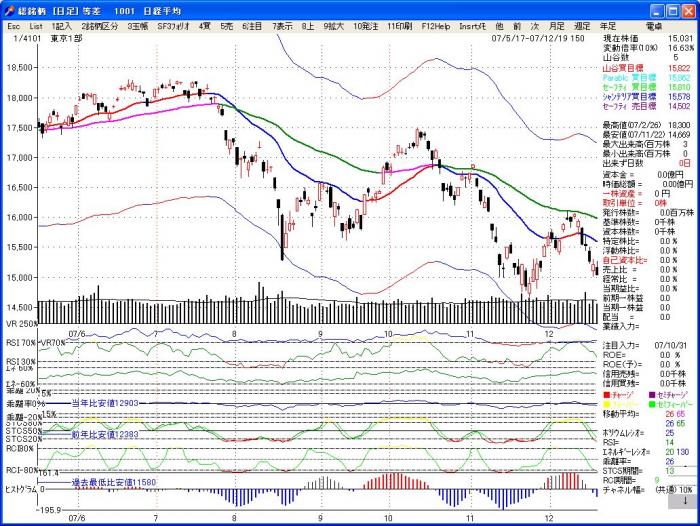最初に、全銘柄リストが呼び出され、その第一番目の「1001日経平均」日足が表示されます。