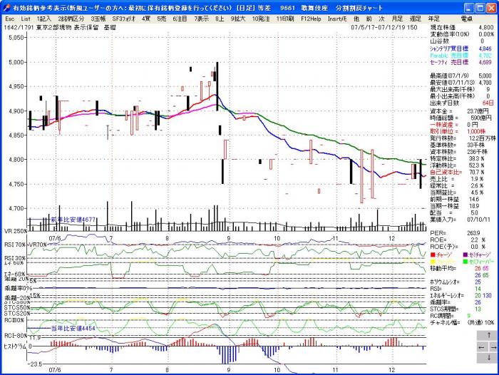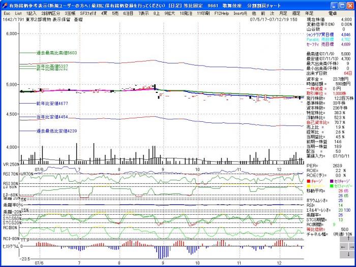 「株式管理」では、薄利多売の回転商いで、複利で利益を拡大していく主義ですから、等比チャートによる銘柄研究は必須です。