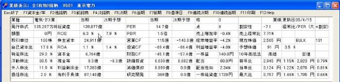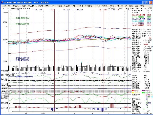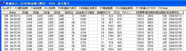 信用残データーの詳細は、チャート画面で週足チャートを表示し、「END」Keyで株価表示を行うと表示されます。