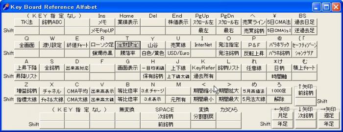 チャート画面では、操作すべき事項が多いため、これに加えて、「Key Board Reference」機能を搭載しています。
