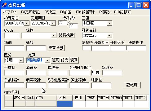 証券会社の売買報告書の売買金額と合わないときは、「消費税計」コラムを再記入してみてください。