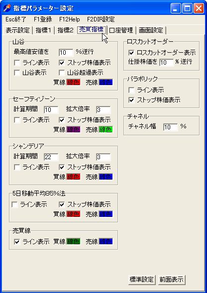 売買指標設定画面