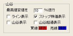 株価が下落すると山谷線は、そこでの山(最高値)から指定%下の水平線となります。