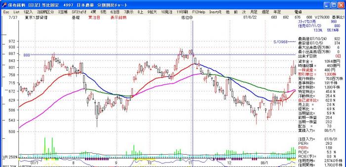 表示位置は、チャート画面右の銘柄データー欄上部です。