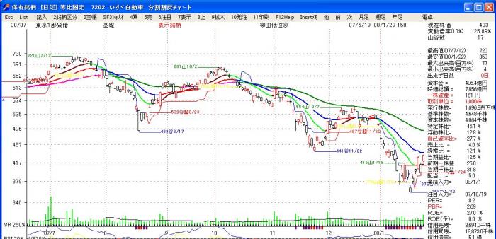 持ち株に対しての目標指標ではないので、仮山からの下降中であれば、売り手仕舞い目標値、仮谷からの上昇中であれば、空売りの買い手仕舞い目標値の表示となります。