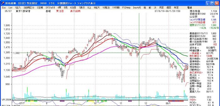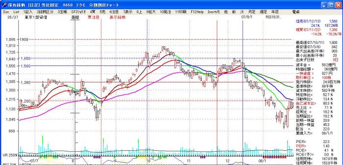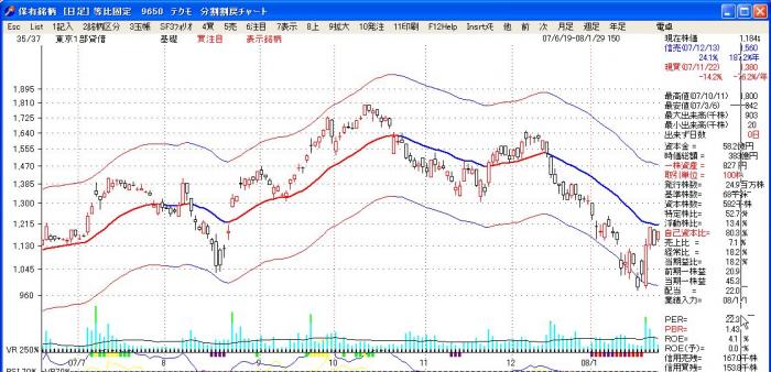 7月初頭で上チャンネルに近づき、約40%の値上がりです。
