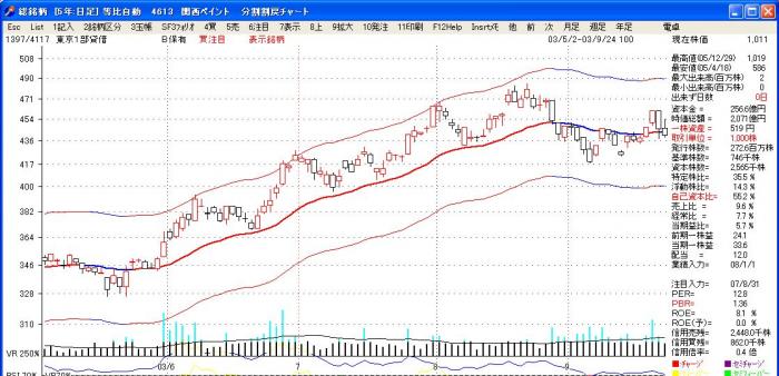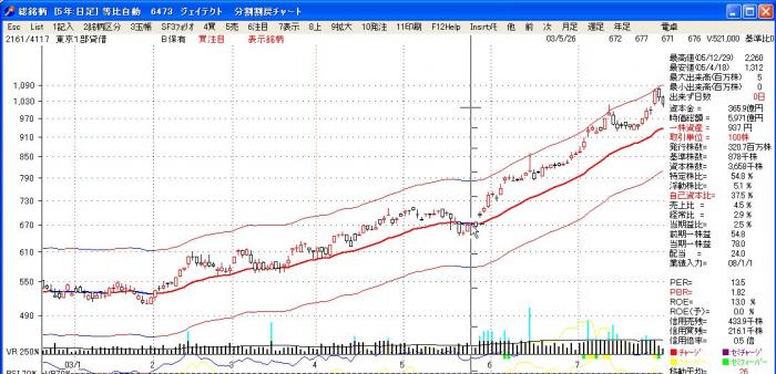 03年4月に上昇トレンドを発見して、注目銘柄に登録して置き、値動きを追って行きます。