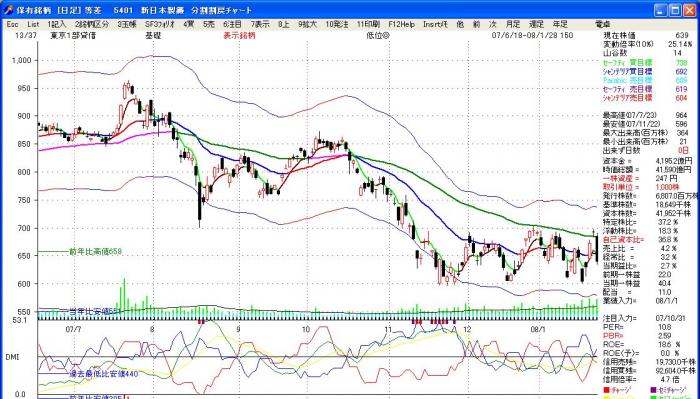 然る元理科系大学教授氏のボリンジャバンドとこのDMIで株式分析をするという手法(MM法)の株式単行本が幾冊も刊行されており、興味があり、作ってみましたが、多分これ以上深追いしないでしょう。