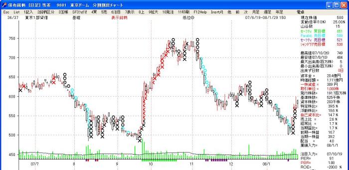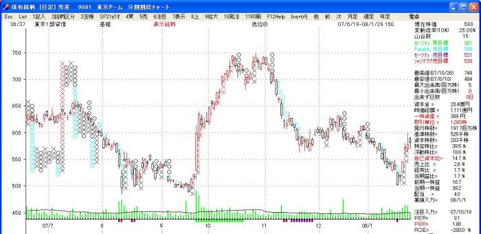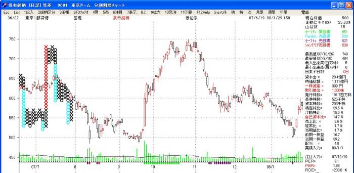 「株式管理」独自考案のポイントアンドフィギュアーリニア表示です。