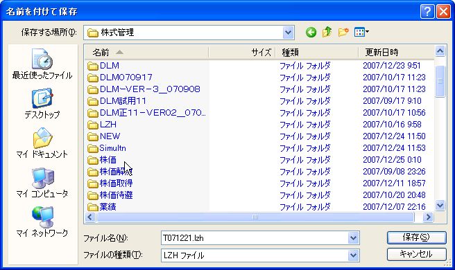 DownLoadした決算発表データ圧縮ファイル名は、「GKYYMM.lzh」、これを解凍すると「YY年MM月決算発表.xls」となります。
