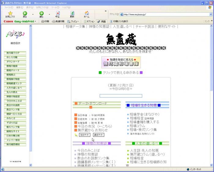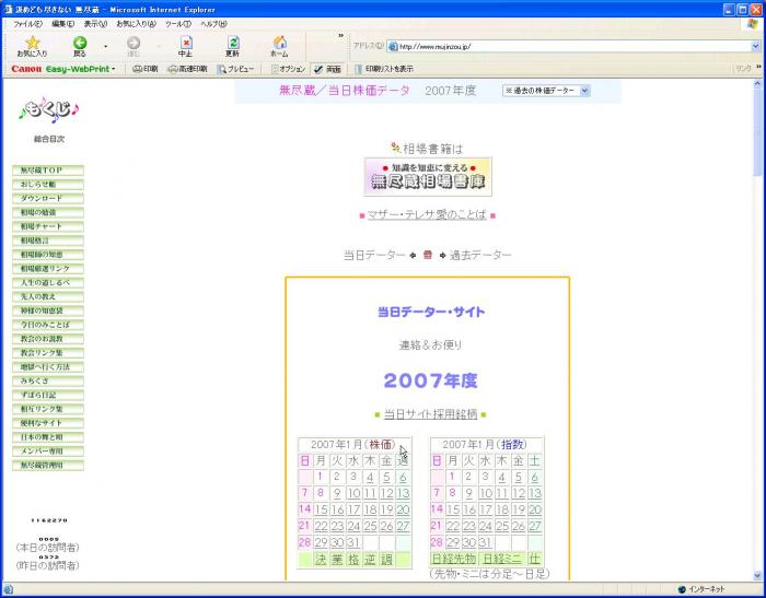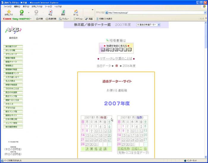 無尽蔵株価データー掲載場所には「当日サイト」と「過去サイト」があります。