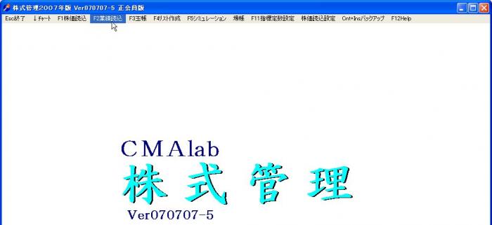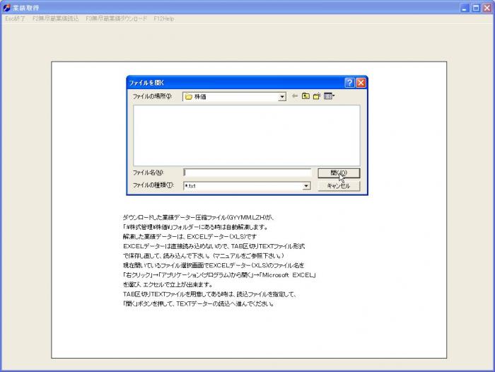 「株式管理」立上げ画面のメニューの「F2業績読込」をクリックします。
