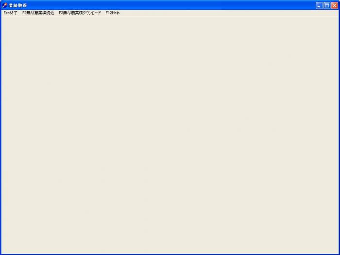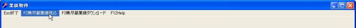立ち上がった「業績取得」画面で、引き続き「F2」Key を押すと、「無尽蔵業績読込」が始まります。