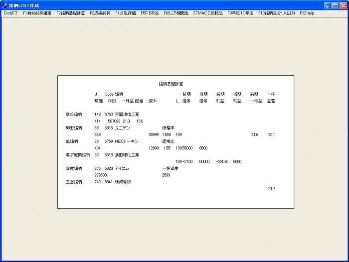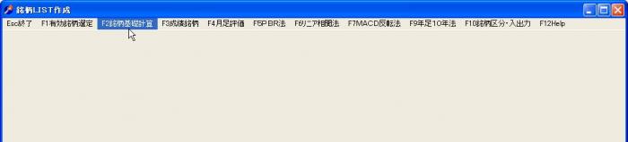 「銘柄LIST作成」画面で 「F1銘柄基礎計算」をクリックします。