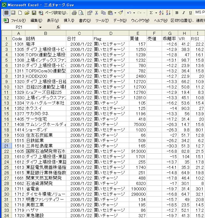 検出「3点チャージ」銘柄呼出