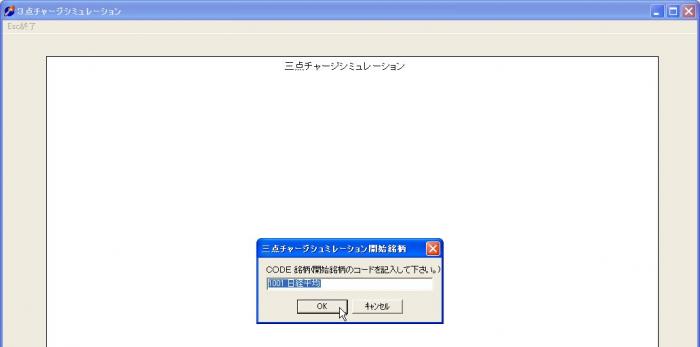 「3点チャージシミュレーション」画面中央に、「3点チャージシミュレーション開始銘柄」ウイザードが表示されます。