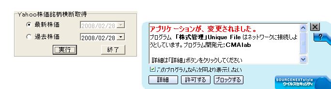 「株式管理」の株価DownLoad機能が起動すると言うことは、