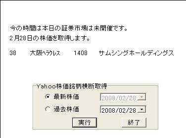 「株式管理」の株価読込回路の中からこのソフトを起動して、株価データーを取得する機能を開発しました。(VER080201)