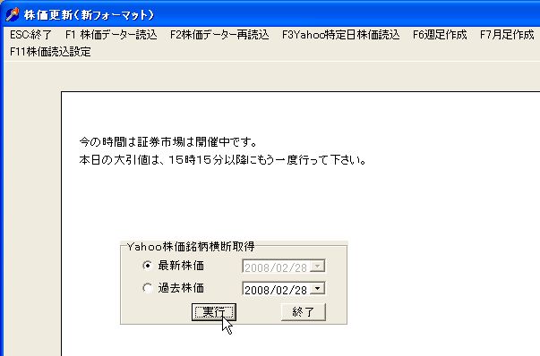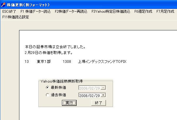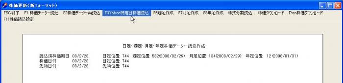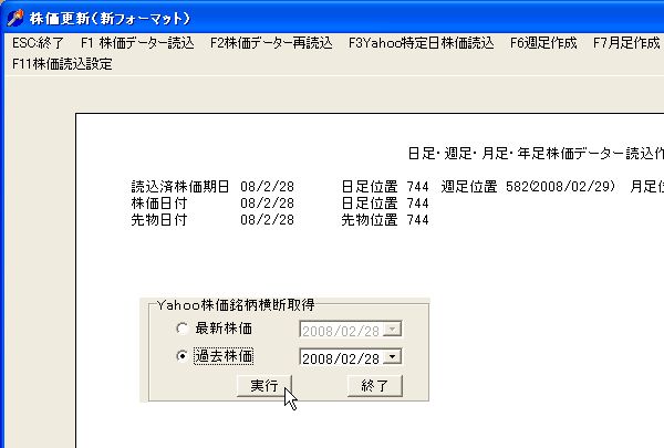 「株価更新」画面のメニューの「F3 YAHOO特定日株価読込」を選びます。